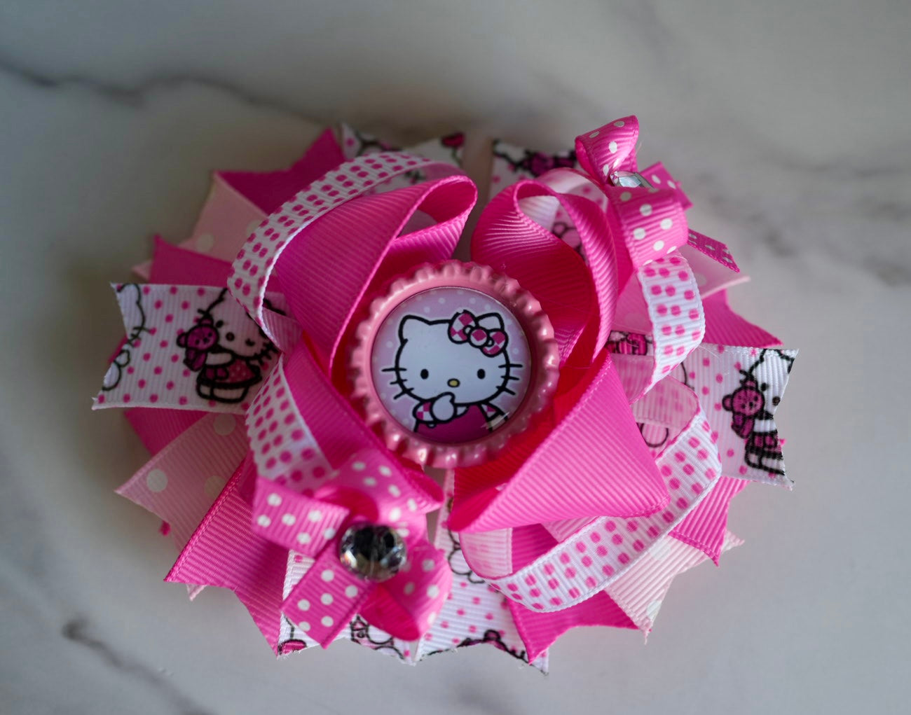 Elevate your little one's outfit with our Kitty Boutique Hair Pink Polka Dots! Made with high-quality grosgrain ribbon, our hair bow features a cute kitty cartoon design that will surely stand out. Its well-made construction ensures durability for any occasion. Perfect for adding a touch of fun and style to any outfit.