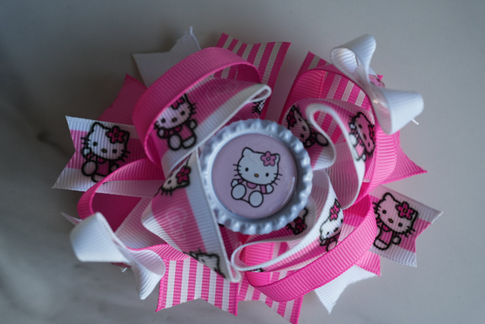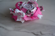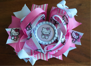 Kitty cartoon boutique hair bow pink stripes