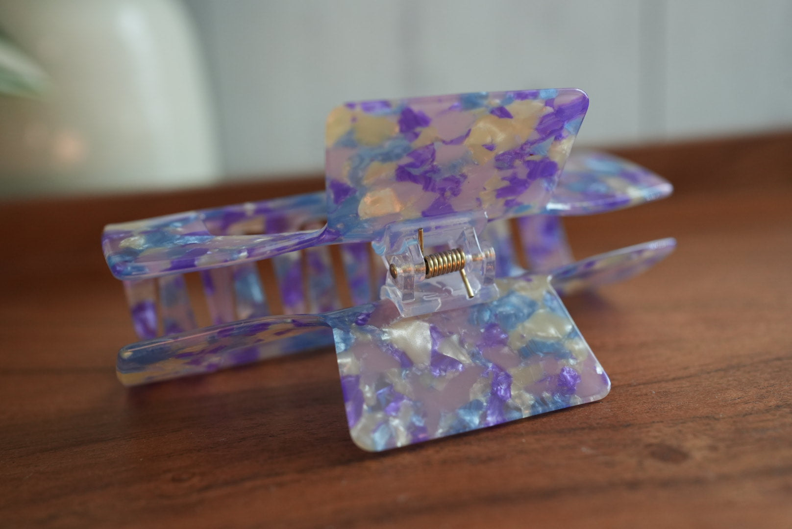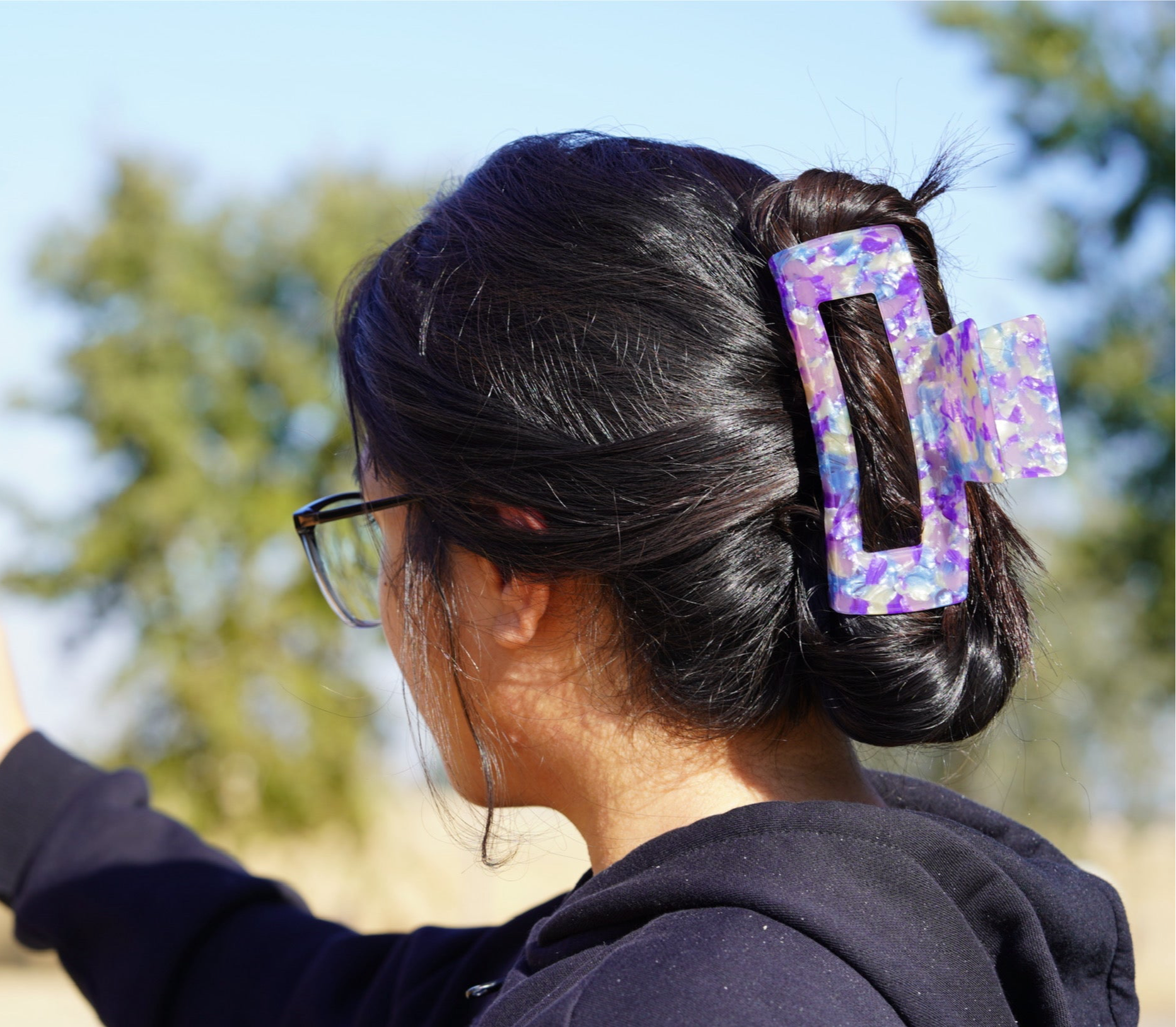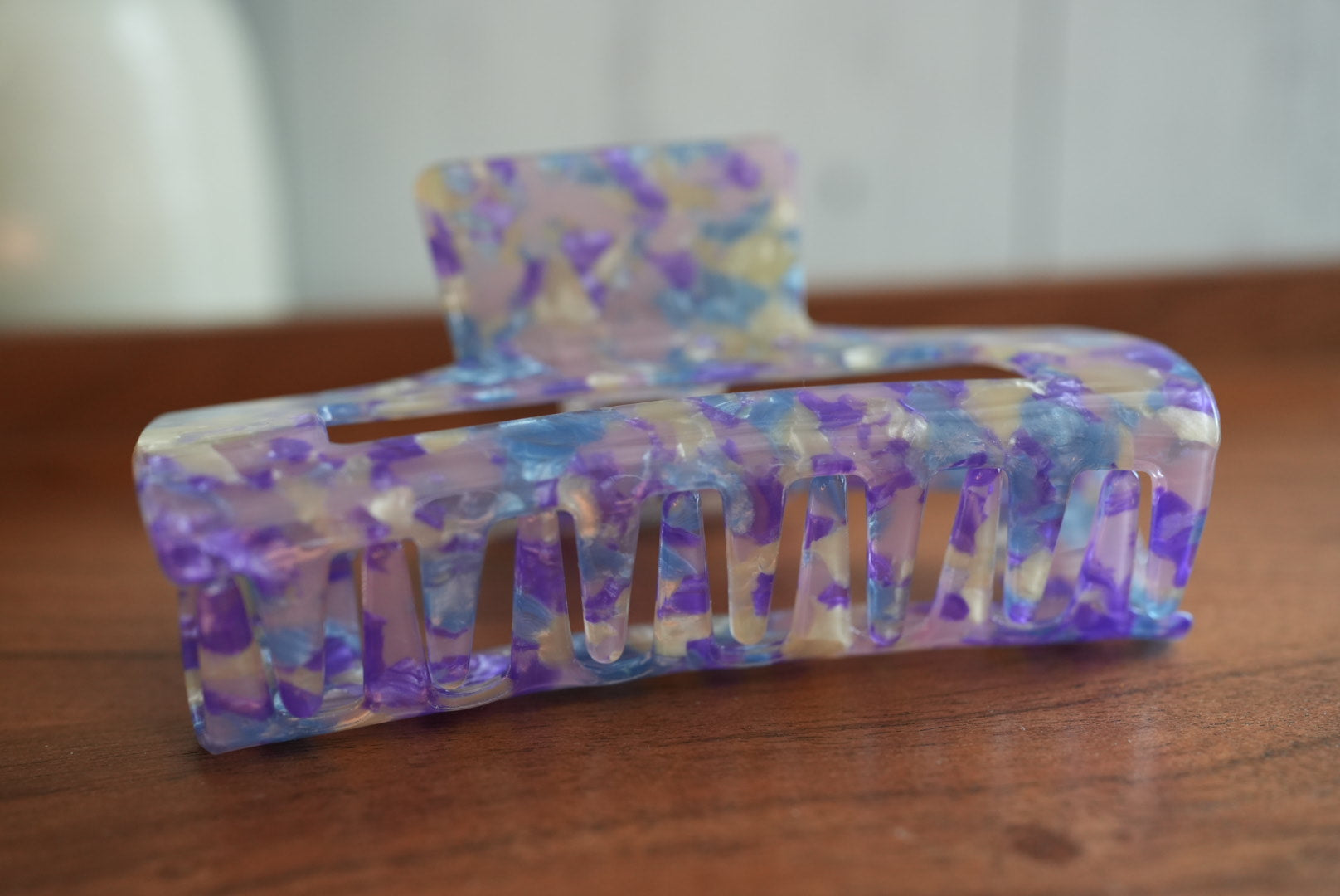 The XL hair claw in a stunning purple color is designed specifically for thick and long hair. Made with high-quality acetate material, this claw is incredibly strong, providing a secure hold. Perfect for everyday use, it's a must-have for those with thick and long hair.